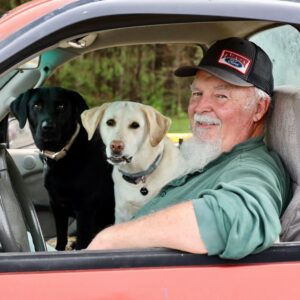 He’s been getting help with food ever since, and his dogs (a yellow lab named Lady and a black lab named Wendy) often come along for the ride.